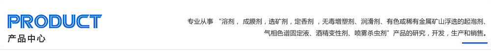 | ? 公司專業(yè)從事 “溶劑, 成膜劑,選礦劑,定香劑 ,無(wú)毒增塑劑、潤(rùn)滑劑、有色或稀有金屬礦山浮選的起泡劑、氣相色譜固定液、酒精變性劑、噴霧殺蟲(chóng)劑”產(chǎn)品的研究,開(kāi)發(fā),生產(chǎn)和銷售。 |